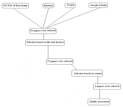 Quality assessment and determination of the risk of bias: The quality of the studies was evaluated based on Down and Black tool. It is a reliable tool to evaluate the quality of the studies. Figure 1 shows the procedure selected in this study.