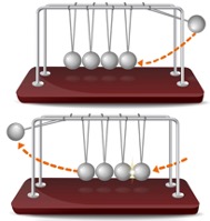 Helmets have largely proved successful in preventing skull fractures from primary and secondary impacts. However, they do not similarly protect against closed head injury, including focal contusions, hematomas, and concussions. The distribution of energy across the helmet and skull prevents fracture but may not adequately dissipate energy transmission affecting the brain [13]. Newton’s cradle is a device that uses swinging spheres in series to demonstrate the conservation of momentum and kinetic energy (Figure 3). Force is transmitted through the middle spheres, which remain stationary. Molecules partially connected by electrostatic forces constrain each other and transfer the pressure wave to the last sphere. This transfer can occur when a dense object is immersed in a less dense medium [14]. For example, in lithotripsy, shock waves can destroy kidney stones without the injuring intermittent structures. An ideal system would be one of elastic collision in which the head and brain transfer but do not absorb energy. A helmet with a soft outer layer covering the hard inner layer may take advantage of this concept. The soft layer may reduce the initial severity and facilitate the transfer of energy as seen in Newton’s cradle. Such helmets have been developed, though their efficacy is unknown, representing an opportunity for future research.