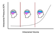 Figure 4: The skull confines the brain, cerebrospinal fluid, and intracranial blood. If volume increases in any of these dynamics, the system eventually loses ability to compensate and intracranial pressure peaks.