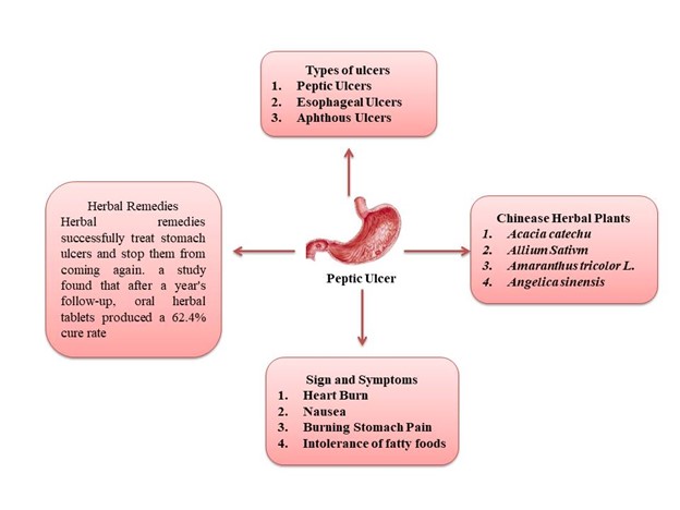 Methodology: In this review, 72 plants were identified and noted with their plant name, Chinese name, family, etc. All the information was obtained from Google Scholar, PubMed, Sci Finder, and Cochrane by using scientific terms like ‘peptic ulcer’, ’stomach ulcer’, and ‘duodenum ulcer’ and we took a lot of data from review and research articles.