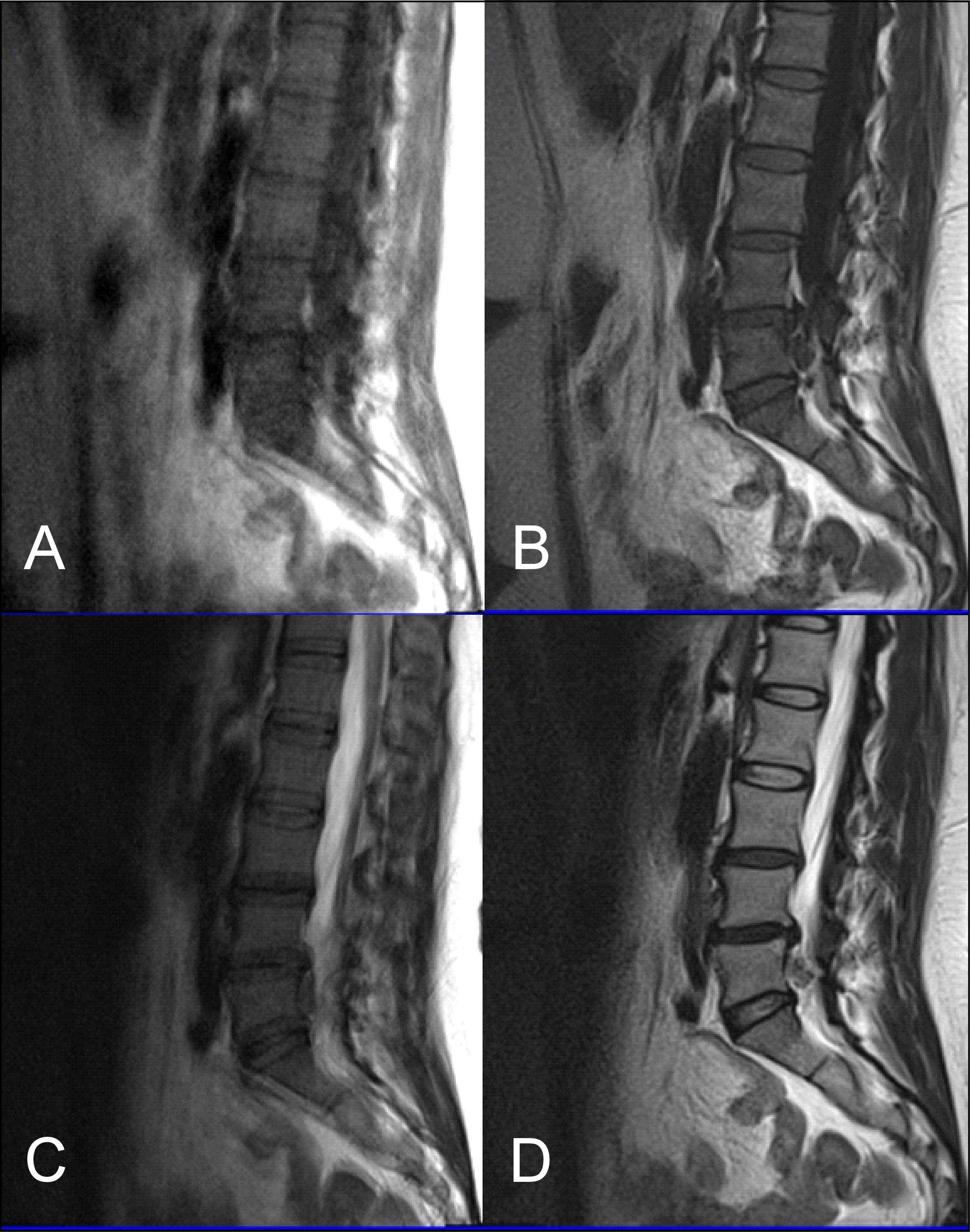 The T1 sequence is the most important sequence for detecting bone marrow pathologies. More specifically, it provides a wide understanding of anatomical and pathological variations in the lumbar spine. In the imaging of the lumbar spine, T1W-Turbo Spin Echo (TSE) or Fast Spin Echo (FSE) images are acquired [3]. According to Melhem et al., who compared T1 FLAIR and T1 SE images, the images received from T1W-FLAIR sequence showed higher contrast around CSF, improved lesion delineation in the spinal cord and bone marrow, and showed less artifacts in comparison with the conventional T1W-SE sequences [4]. The study concluded that T1W-FLAIR images were superior to SE sequences when analyzing spinal imaging. Another study verified that T1W-FLAIR images might be an alternative approach for the imaging of L-spine instead of T1W-TSE, as it achieved better overall image quality and contrast, better signal nulling of CSF, as well as better definition of structures and lesions [5].