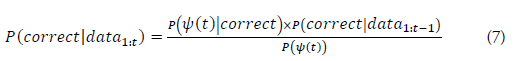 - P(Ψ(t) | correct) is the likelihood of observing event, ψ(t) given that the correct hypothesis is true.