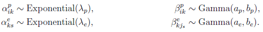 Bayesian modeling proceeds by assigning prior distributions to these matrices. Priors can be specified to be relatively vague or can incorporate information from prior studies or catalogs, as we will see later. Grabski [17] assigns conjugate Gamma priors to the elements of both the signature and exposure matrices:
