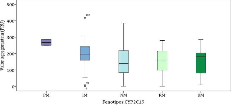 Figure 2: Aggregometry value according to CYP2C19 phenotype.
