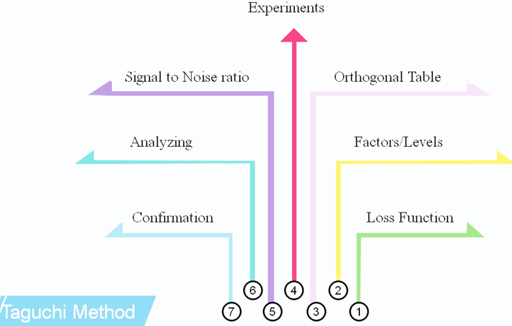 The Taguchi method of quality control is an approach to engineering that emphasizes the roles of research and development (R&D), and product design and development in reducing the occurrence of defects and failures in manufactured goods. The Taguchi method is a powerful tool for designing and optimizing a system's performance [17-21]. For this reason, it has been considered in a wide range of industrial systems because it can reduce their cost by reducing the number of necessary tests. The Taguchi method is a combination of sophisticated mathematical and statistical techniques used in academic and industrial studies. By using this method, optimal conditions are achieved with minimal experimentation. These conditions are characterized by changes in the signal to the noise ratio (S / N). In the following, the conditions that have a greater S / N ratio are considered optimal settings.