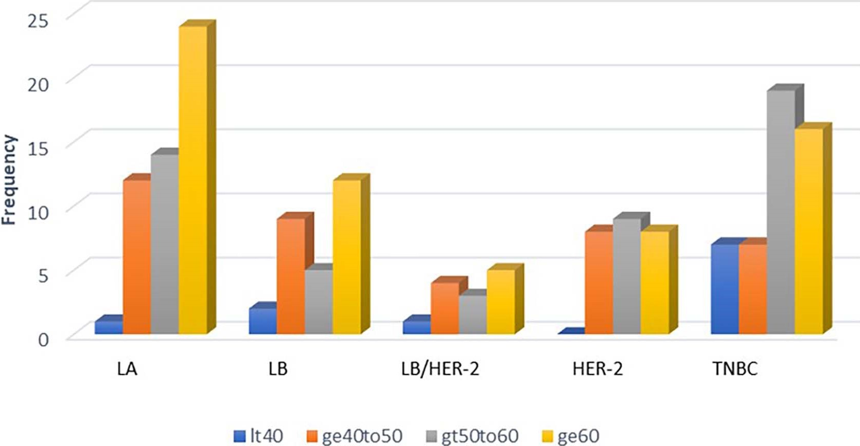 65. Ihemelandu CU, Leffall Jr LD, Dewitty RL, Naab TJ, Mezghebe HM, Makambi KH, et al. Molecular breast cancer subtypes in premenopausal and postmenopausal African-American women: age-specific prevalence and survival. Journal of Surgical Research. 2007 Nov 1;143(1):109-18.