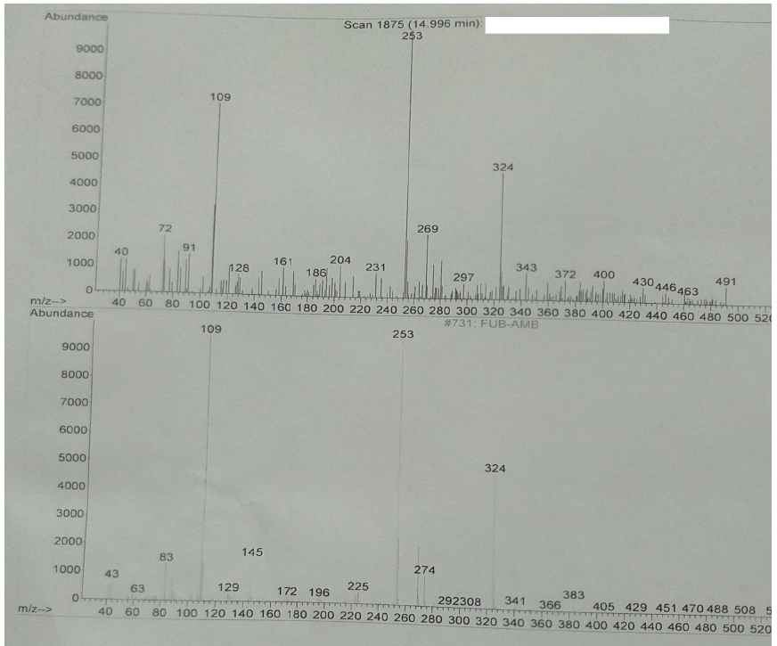 Urine and blood samples from two men aged 35 and 44 years, smoking synthetic cannabis after putting in tobacco were collected. Results shown concentration of AMB-FUB in urine - 0.06 and blood of AMB-FUB 0.03 ng/mL while urine concentration of AB-FUB is 1.7 and blood is 2.9 ng/mL.