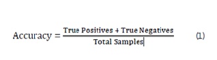 Accuracy: The overall proportion of correctly classified samples out of the total number of samples. While accuracy gives a general idea of model performance, it may not be sufficient in the presence of class imbalance, as a model that predicts the majority class correctly can still have high accuracy while failing to identify the minority class effectively. It is calculated as: