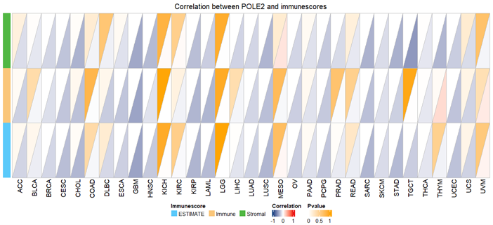 Figure 2. Correlation between POLE2 and immune score displayed by triangle. Pearson correlation was applied.