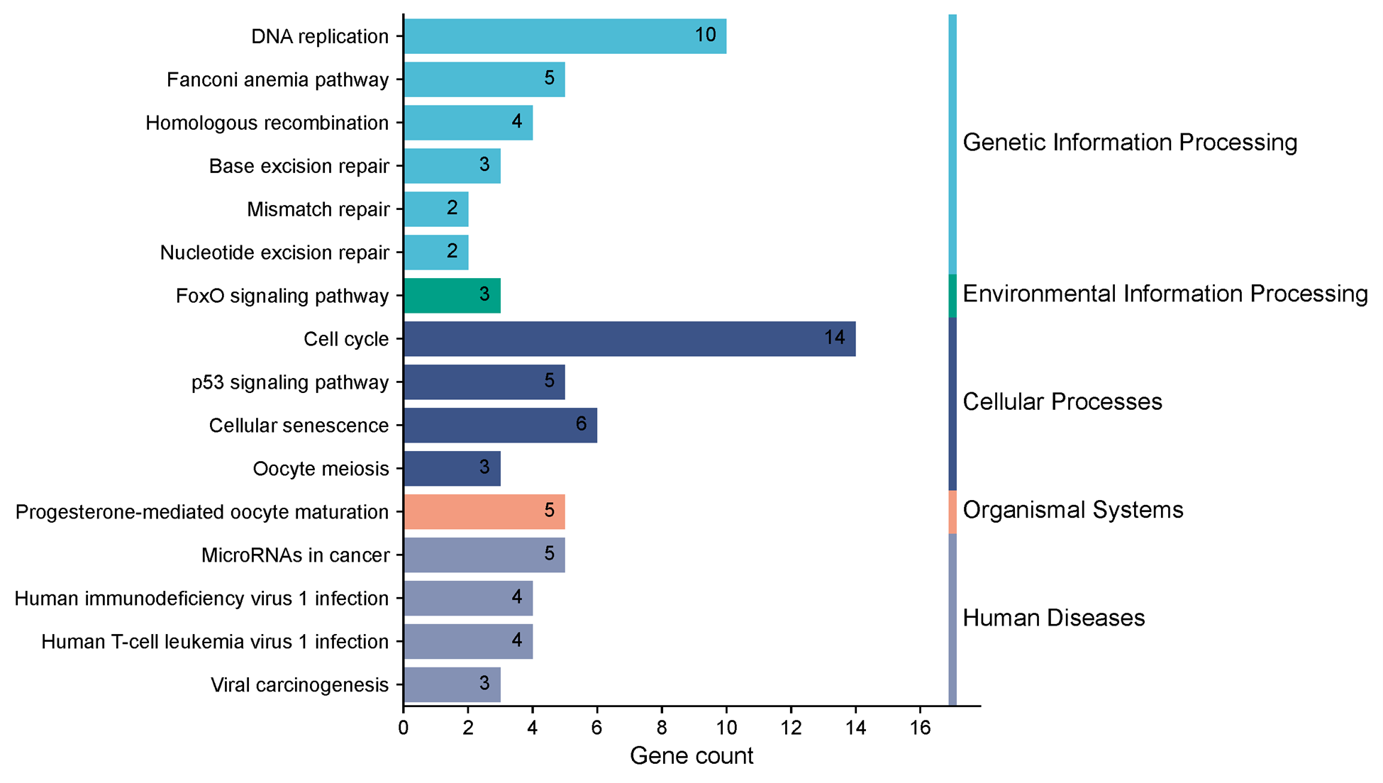 Figure 4. KEGG (Kyoto encyclopedia of genes and genomes) pathway enrichment of POLE2-associated genes in pan-cancer.