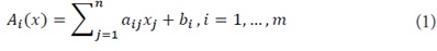 1) Linear interaction functions: Let Ω⊂Rnbe the state space of the system, where m independent linear interactions Ai(x) are defined: