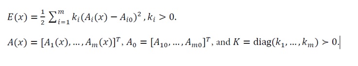 Let A(x)=[A1(x),…,Am(x)]T, A0=[A10,…,Am0]T, and K=diag(k1,…,km)>0.