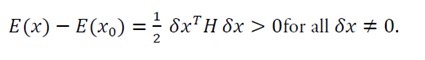 As H>0, E(x) increases quadratically with IIδxII; hence the equilibrium x0 is locally (and globally) stable.