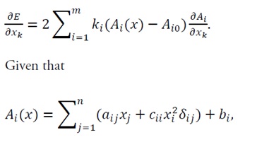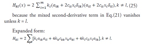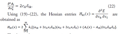 3.2.1 Calculation of the hessian matrix of the energy function: The energy function is given by Eq. (16). The first-order partial derivative with respect to x_k is