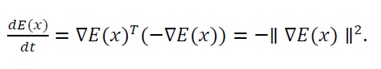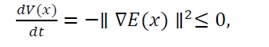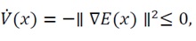decreases monotonically over time (V(x)=-?∇E(x)?2≤0),