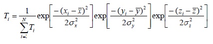 The magnitude of the parameters σx , σy and σz corresponds to the size and shape of the protein. The maximum of this function is at the central point of the ellipsoid (Figure 1A). The distribution expressed by Eq. 1 is the presence of a hydrophobic core – high hydrophobicity values concentrated in the central part of the ellipsoid, with a gradual reduction in hydrophobicity levels until zero at the surface (Figure 1A).