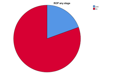 Retinopathy of prematurity (ROP) is one of the major emerging but preventable causes of childhood blindness. ROP is a disease of premature babies. Over the past decade, perception of pathogenesis of ROP has improved tremendously. The condition was initially introduced by Terry in 1942 as retrolental fibroplasia [1]. As neonatal intensive care advances, the chances of survival of premature baby have been increased, therefore the incidence of ROP is also increasing [2]. ROP’s incidence has varied considerably over the years. After the first introduction of ROP, the incidence was high in the 1940s and 1950s mainly as a consequence of the use of unmonitored supplemental oxygen. As survival of extremely premature infants improved over the last few decades and despite better methods of monitoring oxygen supplementation, a rising incidence of ROP reemerged. In the last decade or so, an increasing frequency of ROP blindness has been documented in low-income countries where neonatal care is rapidly improving. Studies suggest that ROP is becoming an important cause of blindness in China, Southeast and South Asia, Latin America, and Eastern Europe – especially in urban centers of newly industrializing countries [3,4]. ROP is characterized by abnormal neovascular development in the retina of premature infants. These abnormal blood vessels are fragile and can leak or bleed, scarring the retina and pulling it out of position. This causes tractional retinal detachment, which is the main cause of visual impairment and blindness in ROP [5]. The stages of ROP describe the ophthalmoscopic findings at the junction between the vascularized and avascular retina; stage 1 is a faint demarcation line, stage 2 is an elevated ridge, stage 3 is an extraretinal fibrovascular tissue, stage 4 is a subtotal retinal detachment, while stage 5 is a total retinal detachment. In addition, plus disease, which indicates significant vascular dilation and tortuosity observed at the posterior retinal vessels, may be present at any stage and reflects the increased blood flow through the retina [6]. Multiple reasons are associated for developing ROP and its complex pathogenesis is yet not fully understood [7]. Some factors have shown consistent and significant association with ROP: low gestational age, low birth weight, low APGAR score and prolonged exposure to supplementary oxygen following delivery [8]. Some other factors like perinatal infection, inflammation, hypoxia, hyperoxia, hypercapnia, repeated blood transfusion and slow weight gain in postnatal period are associated with increased incidence of ROP [9,10]. Antenatal steroid administration is associated with a reduced risk of ROP development and progression to severe ROP [11]. Exclusive human, maternal milk feeding since birth may prevent ROP of any stage in VLBW infants in the NICU [12]. There are two sequential phases in the development of ROP. In 1st phase, cessation of normal retinal vascularization and in 2nd phase, there is abnormal neovascularization of retinal vessels. Neonatal infection and inflammation trigger production of proinflammatory cytokines that are responsible for abnormal retinal angiogenesis [5,10]. Identification of potentially modifiable risk factors and early intervention to address them can significantly decrease the frequency of ROP. Studies have shown that ROP can be prevented by reducing preterm birth and some action needs to be taken for postnatal optimum clinical measures. A systematic review described infection prevention, targeting oxygen saturation, judicious blood transfusion, nutritional interventions care may reduce the incidence of ROP [13]. Development of any stage of ROP can be decreased by lowering oxygen saturation but it increases the chances of mortality. Reduction of any stage of ROP is possible by rapid advancement of parenteral nutrition but it is not applicable in case of severe ROP [13]. However, there is paucity of data in terms of frequency and risk factors of ROP in Bangladesh. So, the aim of this study was to determine the frequency of ROP and identify the risk factors in a tertiary care hospital of Bangladesh.