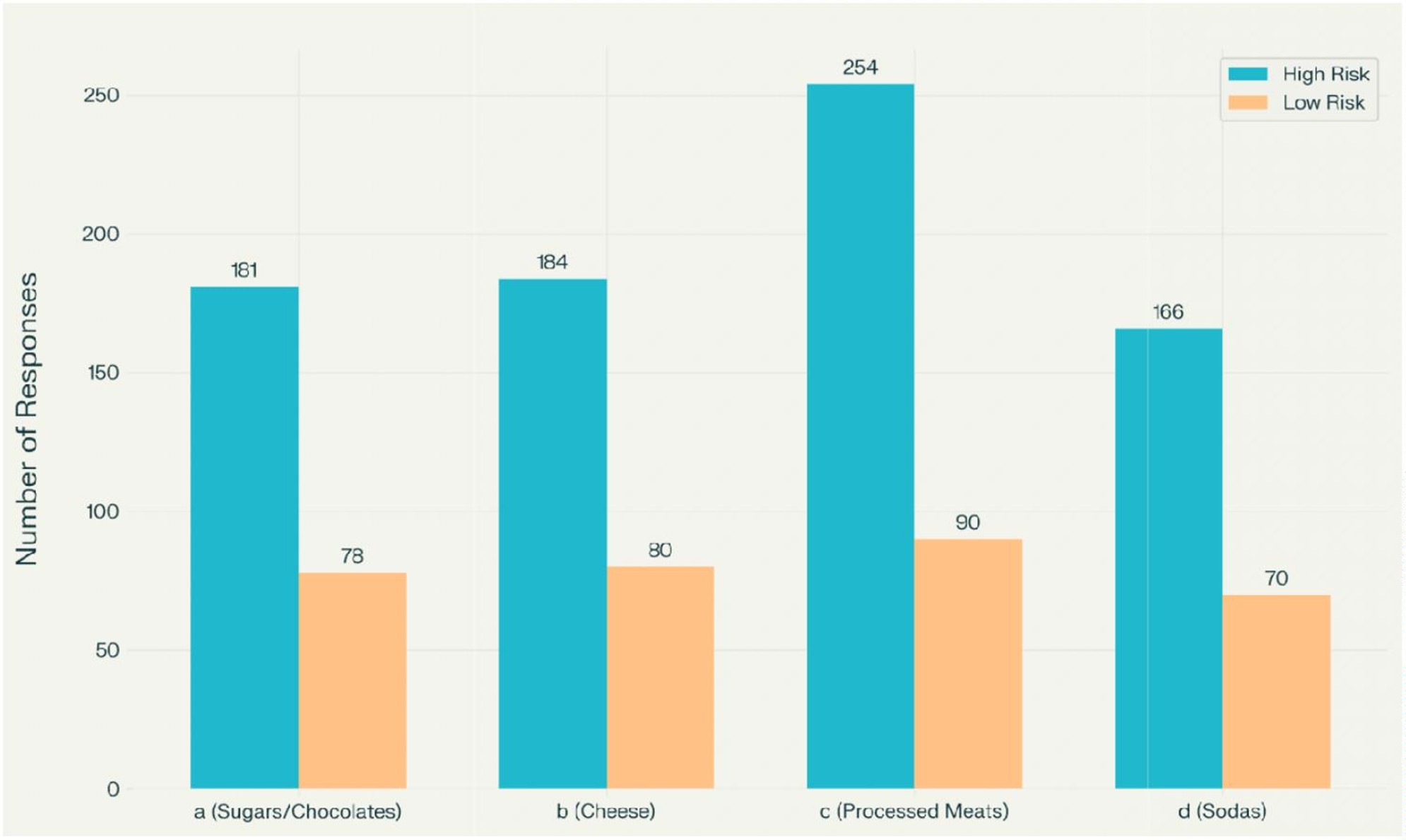 Evaluated using the 8-item modified Yale Food Addiction Scale (mYFAS), with particular focus on processed meats and sugar consumption patterns. Responses were categorized and quantified for analysis [14–16].