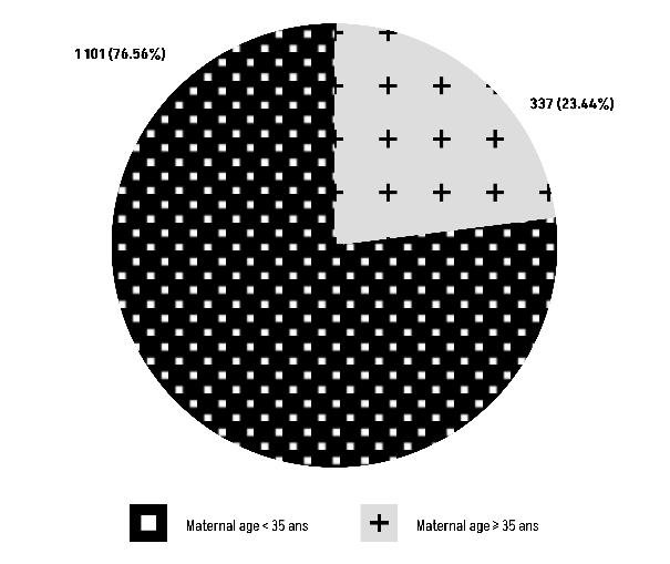 The Chi-square test results (χ² = 1,41, df = 1) show a P-value of 0.235, suggesting that there is no statistically significant relationship between blood group O and maternal age (Figure 10).