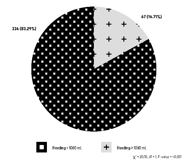 Figure 3: Comparison of Group O with an abnormal bleeding ≥1000 mL.