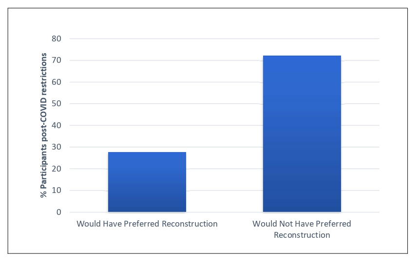 Figure 1: Comparison of percentage of all participants who underwent a procedure post-COVID restrictions who would have preferred reconstruction compared to those who would not have preferred reconstruction.