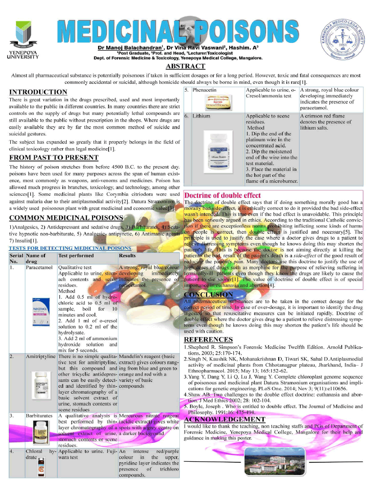 Manoj Balachandran, Vina Ravi Vaswani, Hashim A. Medical Poisons. Arch Clin Toxicol. 2019;1(1):3.