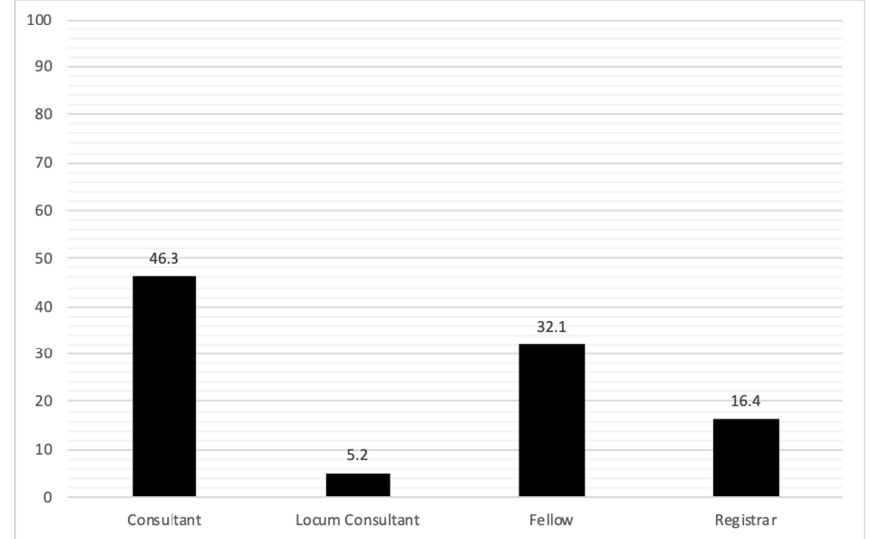 Figure 1: Graph summarising the percentage of cases performed by each surgical grade.