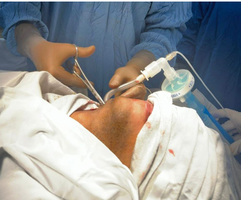 Maxillofacial trauma, often resulting from high-impact incidents like motor vehicle accidents or assaults, presents unique airway management challenges. Anatomical disruption, swelling, and hemorrhage can compromise conventional intubation routes. The priority of securing a definitive airway is further complicated in polytrauma patients with potential basilar skull or cervical spine injuries. Introduced by Hernandez Altemir in 1986 and refined by Hwang et al., submental intubation (SMI) offers an elegant solution—routing an endotracheal tube through a submental incision, bypassing oral and nasal obstacles [1]. Unlike tracheostomy, SMI is a less invasive, temporary procedure that preserves the upper airway anatomy and avoids stoma-related complications, making it particularly valuable in complex craniofacial reconstruction.