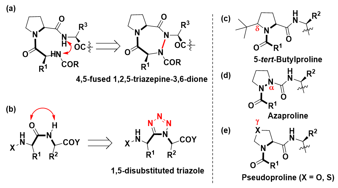 In these methods, the Xaa-Pro backbone, and/or the pyrrolyl peptide bond, and/or the pyrrolidine ring of Pro, all of which are essential recognition elements, are structurally modified. Hence peptidomimetics that can improve the cis/trans isomer ratios without modifying these recognition elements have been more sort after to precisely probe the origins of bioactivity in prolyl peptides.