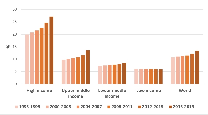 Figure 1: Median Old-Age Dependency Ratio, by Income Level (Source: World Bank 2021).