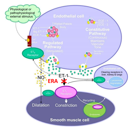 ET-1 expression level is upregulated in patients with PAH, and ETA is also highly expressed in pulmonary arterial smooth muscle cells [10]. Thus, the ET-1/ETA axis contributes to strong vasoconstriction as well as smooth muscle cell proliferation and is pathophysiologically responsible for PAH [11].
