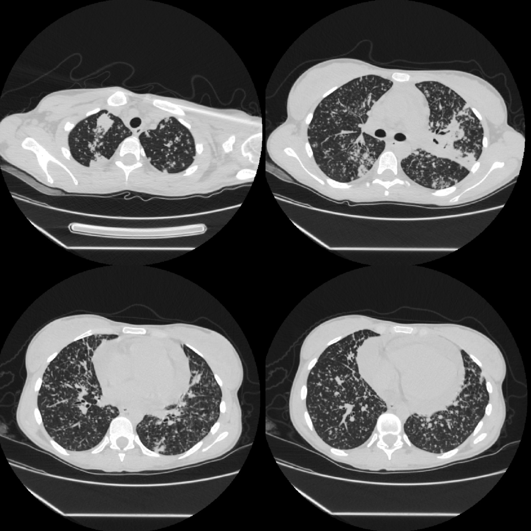 Figure 2. Non-contrast chest CT scan, lung window (description above in the text).