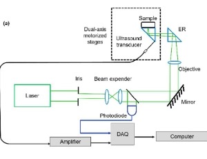 Photoacoustic imaging has increasing biomedical applications, from fundamental research to clinical translations, due to its high optical absorption contrast and high acoustic resolution in deep tissue. The current implementations of photoacoustic imaging employ either a multi-element ultrasonic array for parallel signal detection or raster-scanning of a single-element detector for serial data acquisition, demanding a trade-off between throughput and cost.
