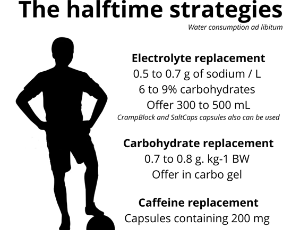 The halftime strategies applied to elite soccer players for rehydration and maintain performance