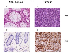 Neuroendocrine neoplasms (NENs) are a heterogeneous group of tumors that occur in many organs. The routinely used IHC markers for NEN diagnosis include chromogranin A (CgA), synaptophysin, Ki67 and CD56. These markers have limitations including a lack of correlation to clinical outcomes and their presence in non-tumor tissue. Identification of additional markers in NEN tissue has the potential to improve clinical outcomes. We generated a detailed tumor profile of tissue from a patient with a grade 3 colonic NEC using phenotypic cancer markers and correlated this with the marker expression of the corresponding patient circulating tumor cells.