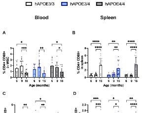 The Apolipoprotein E ε4 allele (APOE4) is a major risk factor in the development of late-onset Alzheimer’s Disease (LOAD; AD) and has been associated with altered immunological responses, particularly under inflammatory challenge. Whether APOE genotype shapes baseline peripheral immunity across aging remains unclear.